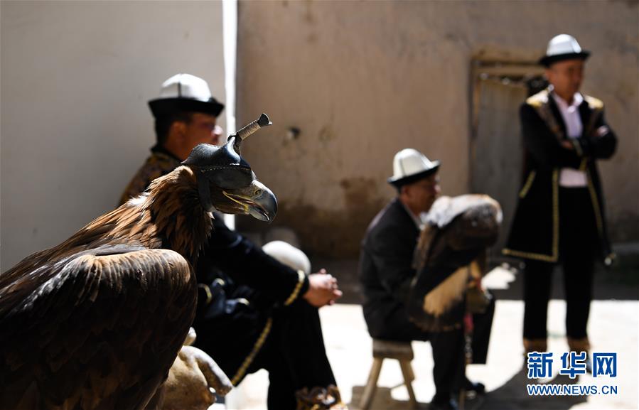 6月29日,庫爾馬西·胡特曼的徒弟在庫爾馬西家中交流馴鷹技藝。新華社記者宋彥樺攝