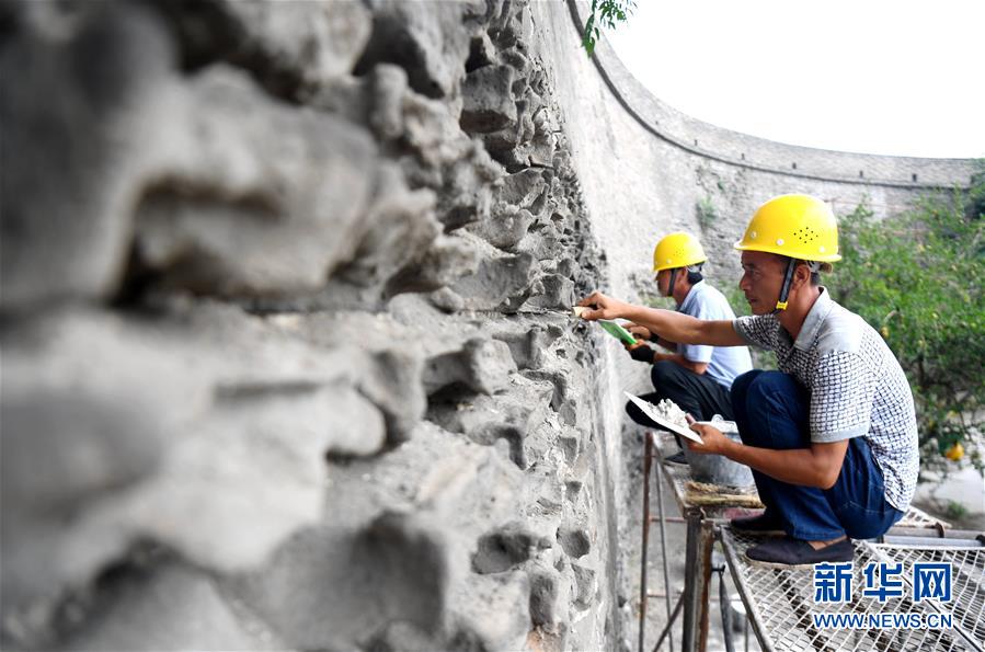 7月2日,工作人員在永年廣府古城修繕城墻。經(jīng)國家文物局和河北省文物局批準(zhǔn),河北永年廣府古城修繕工程已全面啟動。在文物專家全程參與下,按照“不改變文物原狀”原則進(jìn)行修繕,預(yù)計2021年4月底完工。永年廣府古城擁有華北地區(qū)保存最完整的古城墻,現(xiàn)為全國重點(diǎn)文物保護(hù)單位。新華社記者王曉攝