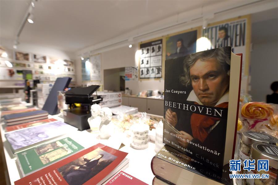 7月2日,奧地利維也納的貝多芬博物館紀念品商店展示關(guān)于貝多芬的書籍。因疫情關(guān)閉的奧地利維也納貝多芬博物館7月1日起再次開門迎客。該博物館是貝多芬在維也納的故居之一,貝多芬曾在此長期居住并創(chuàng)作了部分經(jīng)典的音樂作品。2020年是貝多芬誕辰250周年。新華社記者郭晨攝