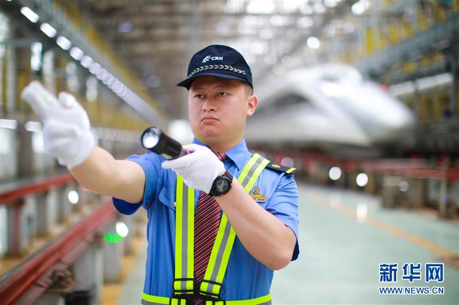 7月3日,擔(dān)任首發(fā)列車值乘工作的隨車機(jī)械師在貴陽(yáng)亮相。 新華社記者 劉續(xù) 攝