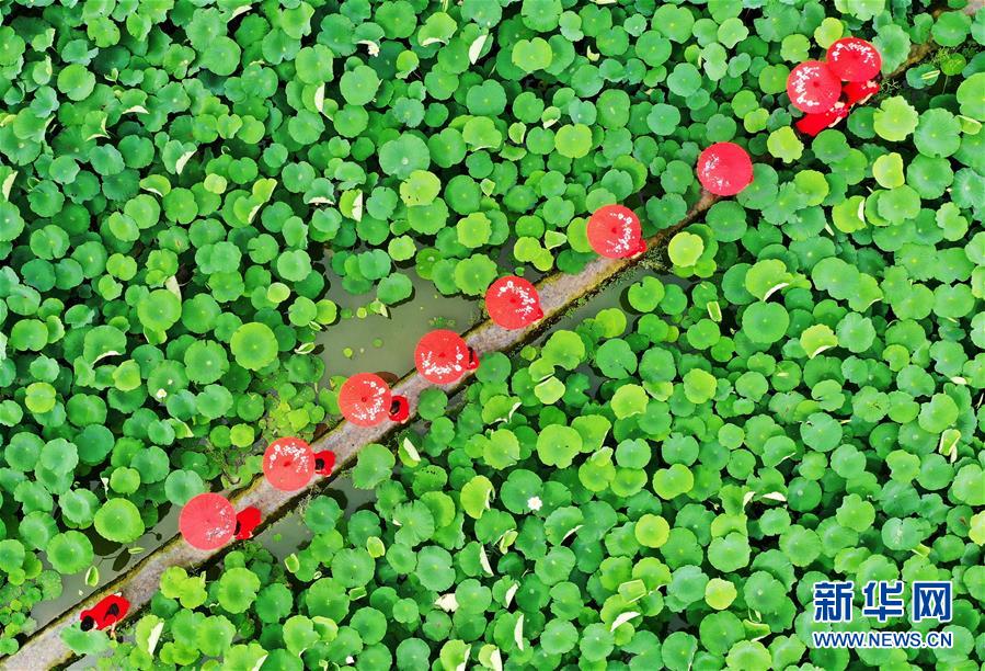 7月3日,游客在曲周縣勝豐蓮藕種植專業(yè)合作社荷塘景區(qū)游覽(無人機(jī)照片)。時(shí)值夏日,河北省曲周縣勝豐蓮藕種植專業(yè)合作社荷塘景區(qū)的荷花競相綻放,吸引眾多游人前來觀光游覽。新華社記者 王曉 攝