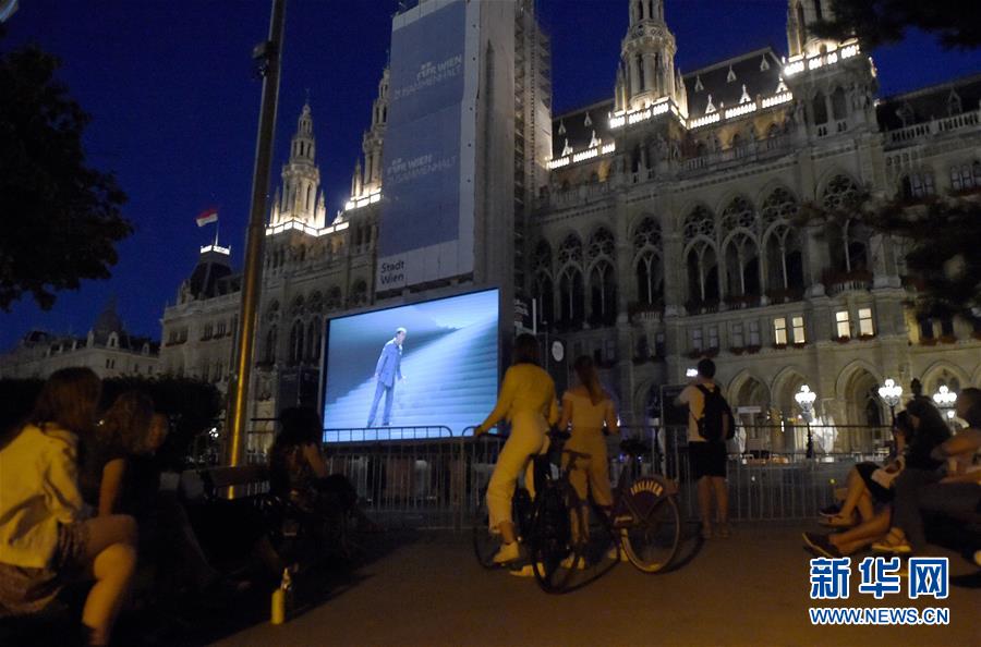 7月4日,觀眾們在奧地利首都維也納市政廳廣場外場區(qū)域觀看維也納電影節(jié)開幕電影——貝多芬的歌劇《菲岱利奧》。新華社記者郭晨攝