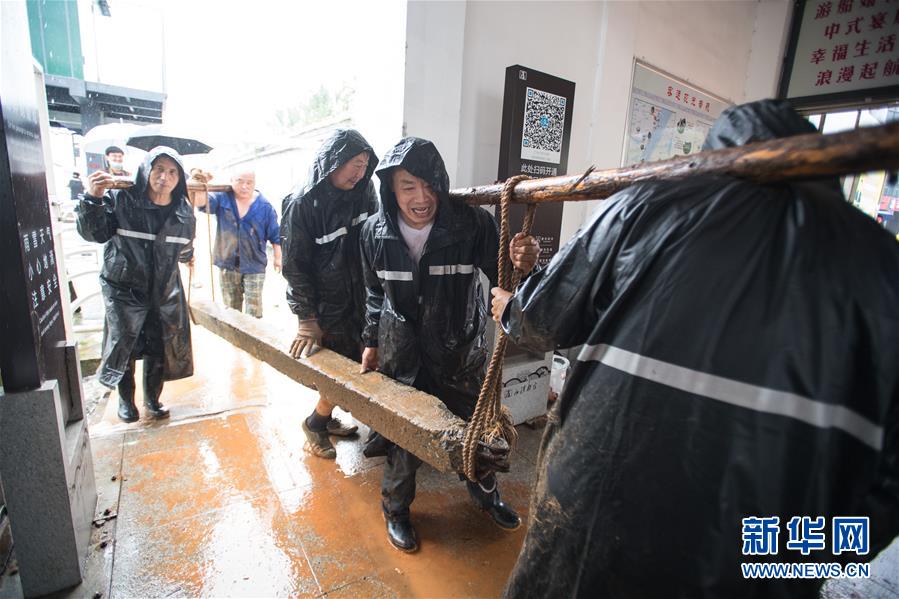 7月6日,工作人員在武漢龍王廟封堵閘口。記者6日從武漢市防汛抗旱指揮部辦公室獲悉,5日以來,武漢遭暴雨襲擊,全市多處路段漬水。至6日4時,長江漢口站超設(shè)防水位1.79米,漢江新溝站超警戒水位0.01米。鑒于當(dāng)前水雨汛情和漬澇情況,武漢市從6日5時起,將排澇應(yīng)急響應(yīng)級別提升至Ⅱ級;從6時30分起,將防汛應(yīng)急響應(yīng)級別提升至Ⅱ級。新華社記者肖藝九攝