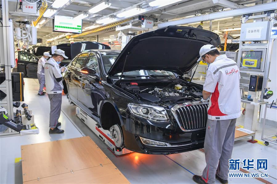在位于長春市的一汽紅旗總裝車間,工人在裝配車輛(6月19日攝)。中國第一汽車集團披露,截至6月30日,集團上半年共計生產(chǎn)整車162.23萬輛,同比增長1.5%;銷售整車163.09萬輛,同比增長2.3%。新華社記者張楠攝