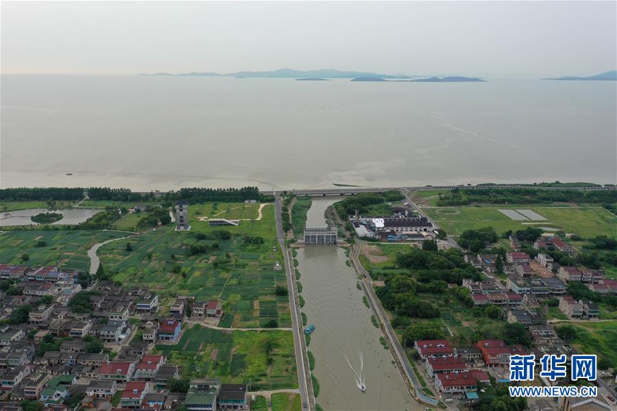 7月7日無人機(jī)拍攝的吳興高新區(qū)幻溇村連通太湖的水閘。太湖水位近期持續(xù)上漲。近日,位于浙江北部的湖州市遭遇多輪降雨,東部平原河網(wǎng)普遍超警戒水位,水庫山塘高位運(yùn)行。7月5日12時(shí)30分,湖州市人民政府防汛防旱指揮部將防汛應(yīng)急響應(yīng)提升至Ⅲ級(jí),要求各地密切監(jiān)測汛情,切實(shí)做好各項(xiàng)防范工作,確保安全度汛。新華社記者黃宗治攝