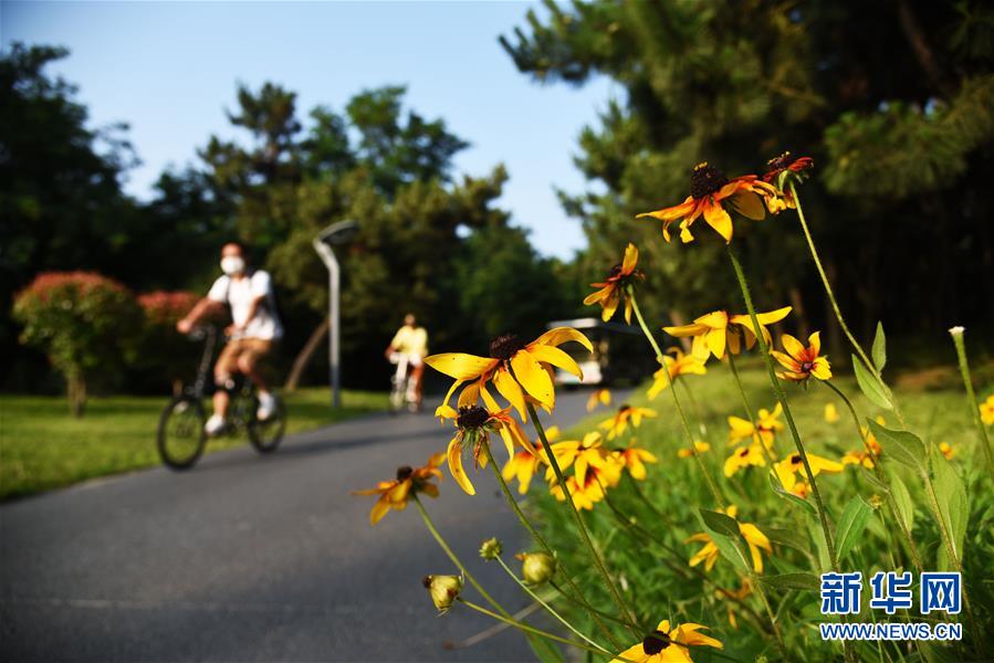 7月7日,市民在日照陽光海岸綠道騎行。新華社記者王凱攝