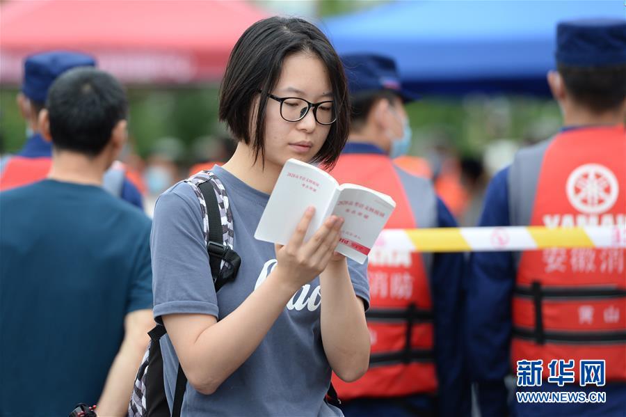 7月9日,一名考生在歙縣第二中學(xué)考點外復(fù)習(xí)。受強降雨影響,2020年高考安徽歙縣考區(qū)7月7日未能如期開考,經(jīng)研究并報教育部批準(zhǔn),歙縣考區(qū)于9日啟用2020年普通高等學(xué)校招生全國統(tǒng)一考試語文、數(shù)學(xué)(文、理)科目副題進(jìn)行考試。新華社記者黃博涵攝