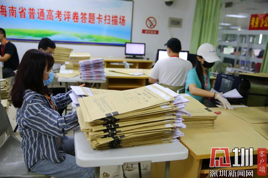2020年7月13日,在海南師范大學(xué)高考評(píng)卷場(chǎng),工作人員仔細(xì)拆封考卷并進(jìn)行掃描入電腦,整個(gè)過程井然有序。在評(píng)卷現(xiàn)場(chǎng)的入口,除了有武警把守之外,所有工作人員進(jìn)入到評(píng)卷場(chǎng)均有專人使用手柄式金屬探測(cè)器對(duì)其進(jìn)行安檢,并通過身份證識(shí)別系統(tǒng)中進(jìn)行身份識(shí)別,方可以進(jìn)入。考生答題卡由武警24小時(shí)值守,并實(shí)行嚴(yán)密的視頻監(jiān)控。