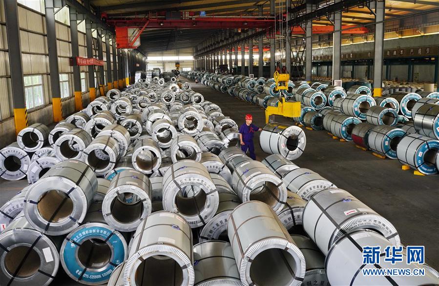 7月13日,河北省遷安市一家鋼鐵外貿(mào)企業(yè)的工人在生產(chǎn)車間內(nèi)吊裝彩涂板。近期,河北省遷安市的紡織、鋼鐵、建材等二十余家外貿(mào)企業(yè)加緊生產(chǎn)趕制訂單,滿足市場需求。同時(shí),當(dāng)?shù)卣ㄟ^落實(shí)各項(xiàng)惠企政策,加大對(duì)外貿(mào)企業(yè)的幫扶支持力度,助力經(jīng)濟(jì)平穩(wěn)發(fā)展。新華社記者 牟宇 攝