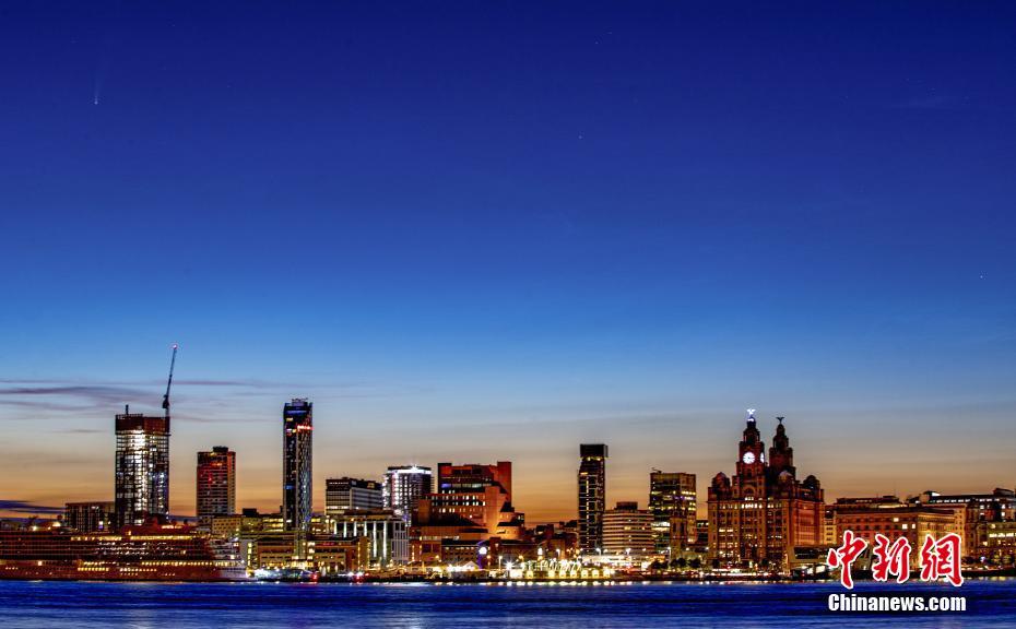 當(dāng)?shù)貢r(shí)間7月12日,英國(guó)利物浦,清晨時(shí)分,NEOWISE彗星出現(xiàn)在空中。圖片來(lái)源:視覺(jué)中國(guó)