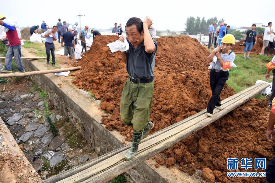 7月14日,當(dāng)?shù)卮迕裢簧习徇\(yùn)砂石袋。近日,受洪水影響,安徽省望江縣華陽鎮(zhèn)境內(nèi)的江調(diào)圩內(nèi)部道路漫水,搶險(xiǎn)車輛無法進(jìn)入。當(dāng)?shù)胤姥床块T組織船只裝載砂石袋等防汛物資,運(yùn)往圩堤保防汛。新華社記者 劉軍喜 攝