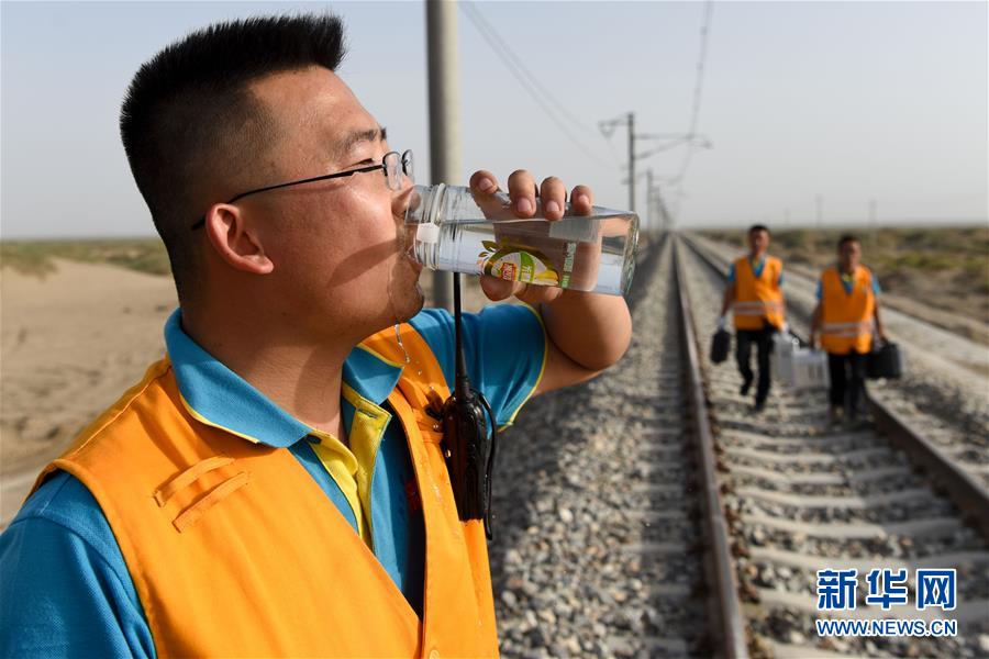 工作間隙,技術員休息喝水(7月14日攝)。新華社記者 丁磊 攝