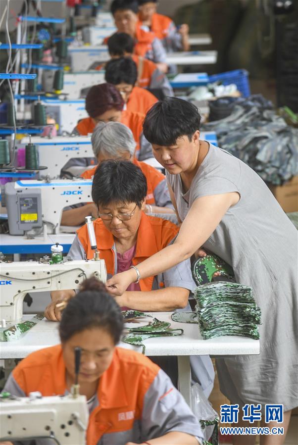 7月16日,在河北省深州市高古莊鎮(zhèn)鳳凰池村扶貧車(chē)間,馬京娜指導(dǎo)車(chē)間工人加工帽子。馬京娜是河北省深州市高古莊鎮(zhèn)鳳凰池村的致富能手。在市、鄉(xiāng)、村各級(jí)部門(mén)的大力支持下,馬京娜創(chuàng)辦扶貧車(chē)間,為建檔立卡貧困戶設(shè)立崗位,帶領(lǐng)貧困戶脫貧增收。目前,馬京娜的扶貧車(chē)間提供就業(yè)崗位30多個(gè)。新華社記者李曉果攝