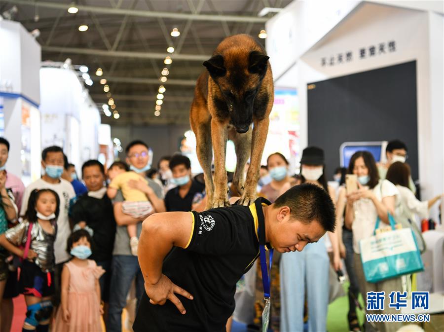 7月19日,在成都世紀城新國際會展中心,一家寵物學校的馴導師在表演馴犬。當日,第九屆成都國際寵博會進入最后一天。此次展會展出面積30000平方米,匯聚國內(nèi)外品牌企業(yè)和產(chǎn)品,覆蓋中西部地區(qū)寵物行業(yè)食品、用品、醫(yī)療和服務(wù)等領(lǐng)域。新華社記者王曦攝