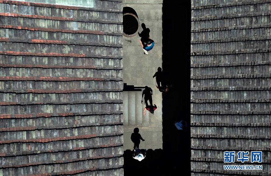 7月19日,游客們在永泰縣同安鎮(zhèn)愛荊莊里觀賞游玩(無人機(jī)照片)。近年來,福建省福州市永泰縣重視古莊寨保護(hù)與利用工作,遵循“保護(hù)為主、修舊如舊”原則,加大修繕保護(hù)力度,通過對古莊寨古村落等物質(zhì)載體進(jìn)行活化利用,打造莊寨+旅游、莊寨+研學(xué)等產(chǎn)業(yè)發(fā)展模式,帶動鄉(xiāng)村振興。永泰縣地處福州西南部,擁有保存較好的古莊寨152座,面積1000平方米以上、年代100年以上98座。新華社記者魏培全攝