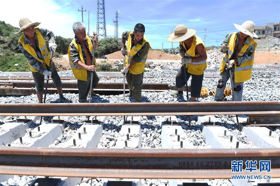 7月20日,中鐵二十四局施工人員進(jìn)行平潭海峽公鐵大橋最后一根500米長(zhǎng)軌的換鋪工作。當(dāng)日,中鐵二十四局施工人員在平潭海峽公鐵大橋進(jìn)行最后一根鐵路長(zhǎng)軌換鋪。至此,平潭海峽公鐵大橋雙線鐵路長(zhǎng)軌全部換鋪完成。新華社記者林善傳攝