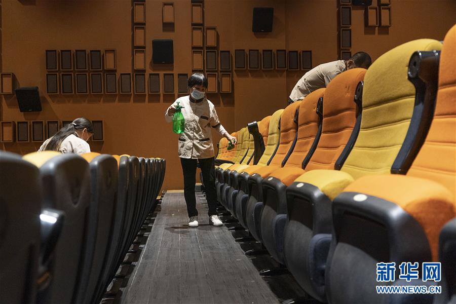 7月20日,一家影院的工作人員在觀眾散場后進(jìn)行消殺工作。當(dāng)日,在各項疫情防控措施有效落實到位的前提下,武漢市部分電影院恢復(fù)開放。新華社記者熊琦攝