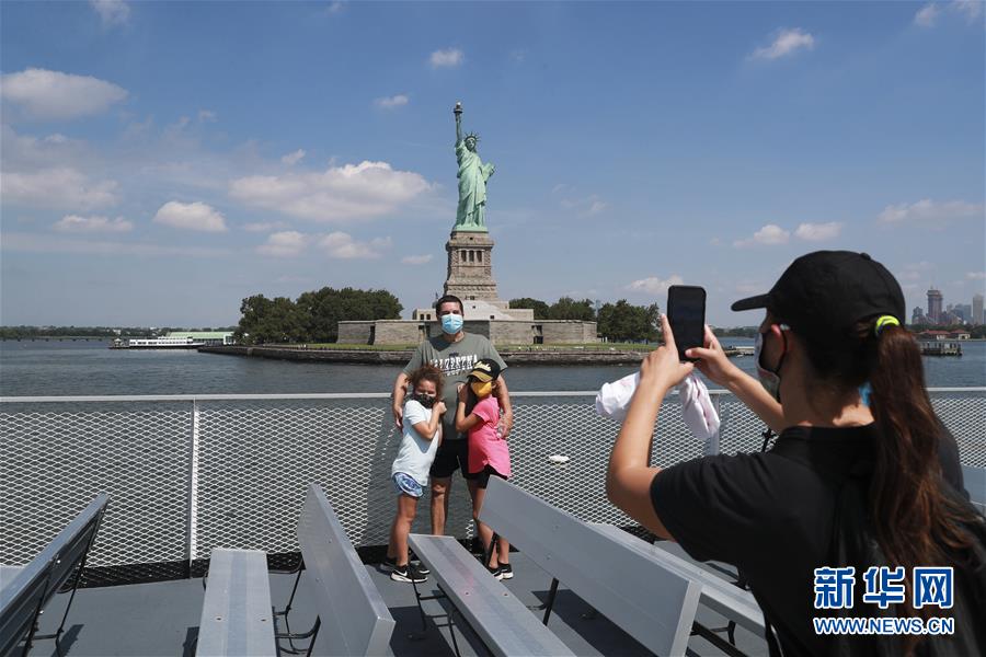 7月20日,參觀者在美國紐約前往自由島的游艇上拍照留念。美國紐約市20日繼續(xù)推進(jìn)經(jīng)濟(jì)重啟計(jì)劃,宣布開始進(jìn)入解封新階段,進(jìn)一步允許部分低風(fēng)險(xiǎn)文娛活動(dòng)重啟。自由女神像所在的自由島對公眾開放,但雕像內(nèi)部和博物館仍關(guān)閉。新華社記者王迎攝