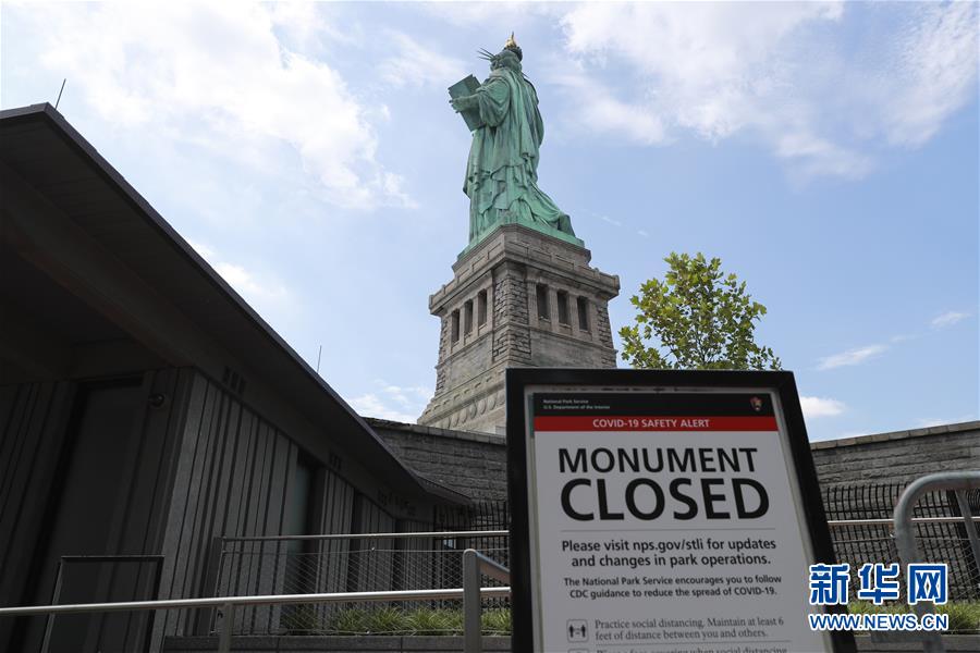 7月20日,美國紐約自由島上一處提示牌顯示自由女神像內(nèi)部的參觀仍處于暫停狀態(tài)。美國紐約市20日繼續(xù)推進(jìn)經(jīng)濟(jì)重啟計劃,宣布開始進(jìn)入解封新階段,進(jìn)一步允許部分低風(fēng)險文娛活動重啟。自由女神像所在的自由島對公眾開放,但雕像內(nèi)部和博物館仍關(guān)閉。新華社記者王迎攝