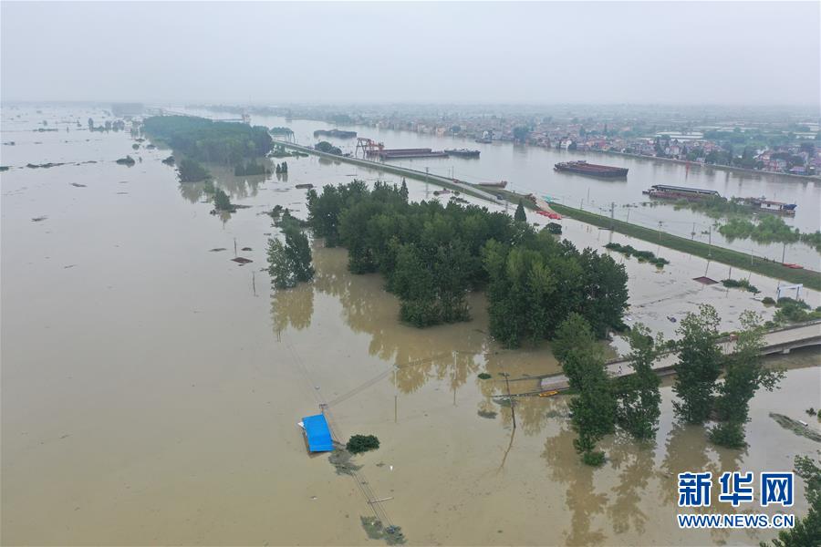 7月21日拍攝的被淹的南京市高淳區(qū)陽(yáng)江鎮(zhèn)勝利圩(無(wú)人機(jī)照片)。新華社記者季春鵬攝
