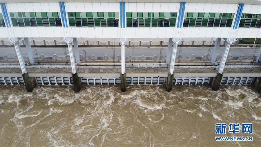 這是7月23日在安徽省阜南縣拍攝的正在關(guān)閘的淮河王家壩閘(無(wú)人機(jī)照片)。當(dāng)日13時(shí),淮河干流王家壩閘關(guān)閘,停止向蒙洼蓄洪區(qū)泄洪。新華社記者張端攝