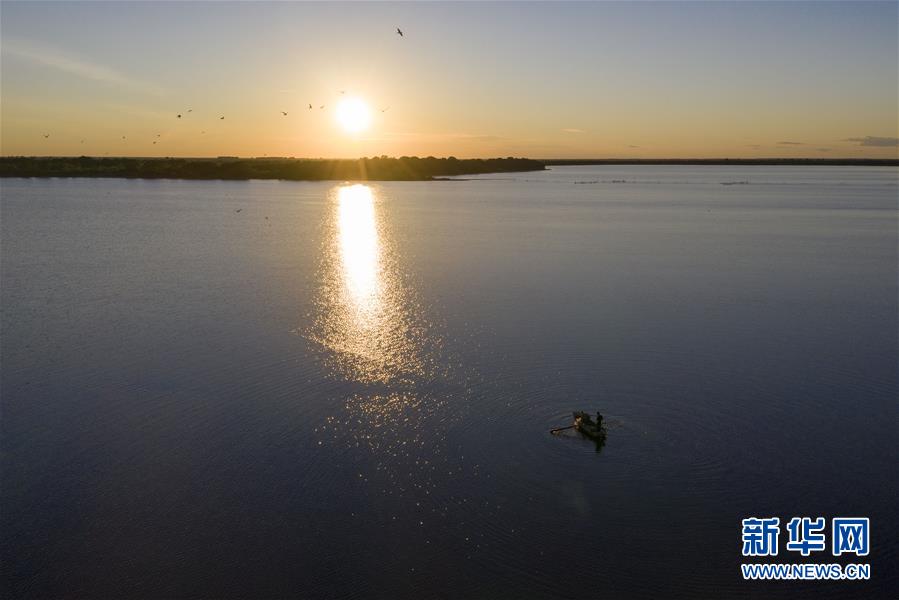 7月24日,漁民在大力加湖中捕魚(無人機(jī)照片)。大力加湖位于“中國東極”黑龍江省撫遠(yuǎn)市,面積28.5平方公里,兩岸地勢低平,多濕地、草原,湖內(nèi)水產(chǎn)豐富。夏日傍晚時分,漁民捕魚歸來,美麗畫卷映入眼簾。新華社記者謝劍飛攝