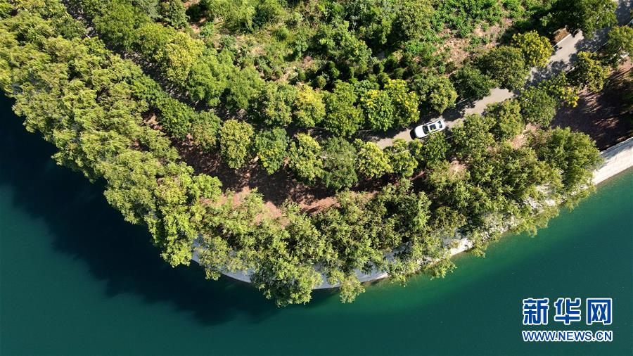 7月26日,汽車(chē)行駛在欒卸村的樹(shù)林里(無(wú)人機(jī)照片)。盛夏,位于太行山區(qū)的河北省沙河市欒卸村滿(mǎn)目蔥蘢,山水、田園、民居構(gòu)成一幅美麗鄉(xiāng)村圖景。新華社記者 牟宇 攝