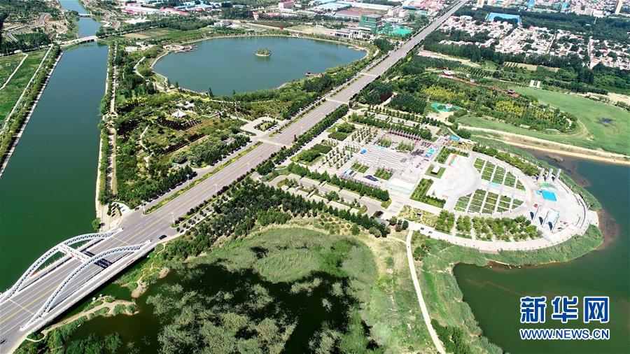 這是7月25日拍攝的河北省巨鹿縣洪溢河生態(tài)湖區(qū)(無人機(jī)照片)。
