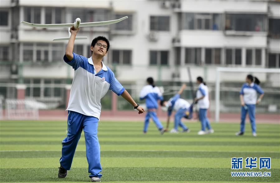 7月27日,參加暑期實(shí)踐營(yíng)的學(xué)生在天津中學(xué)操場(chǎng)上體驗(yàn)航模。新華社記者 李然 攝