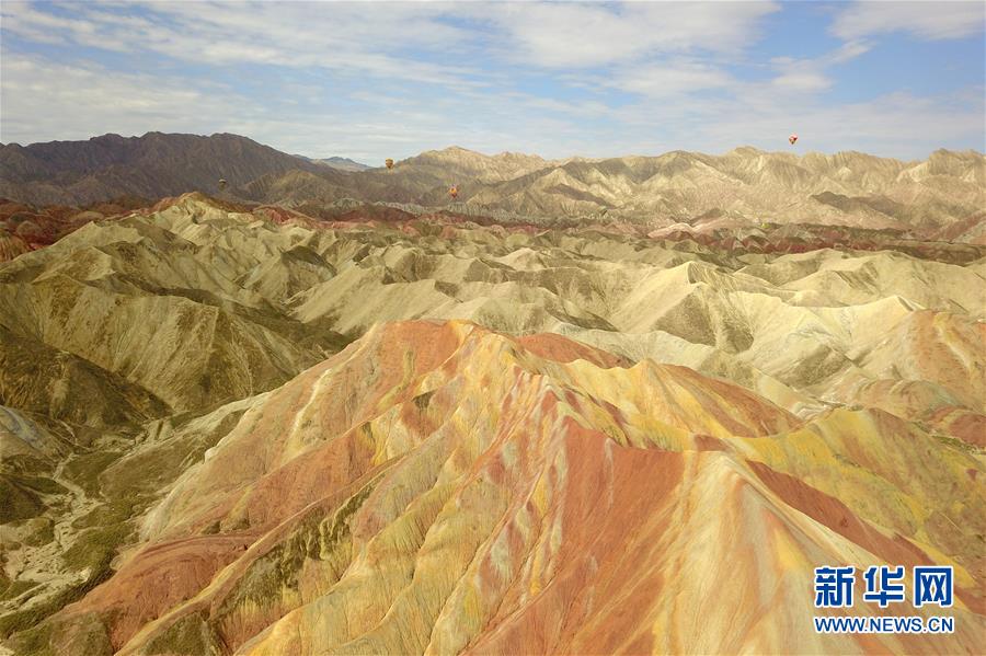 這是7月27日拍攝的張掖世界地質(zhì)公園七彩丹霞景區(qū)景觀(無人機照片)。新華社記者 范培珅 攝