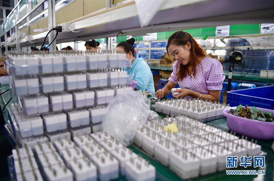 7月25日,在陜西漢陰縣澗池鎮(zhèn)紫云南郡易地扶貧搬遷安置社區(qū)的社區(qū)工廠內(nèi),社區(qū)居民在加工插頭。陜南地區(qū)地處秦巴山區(qū),是陜西脫貧攻堅(jiān)的主戰(zhàn)場(chǎng)。近年來,陜南各縣區(qū)因地制宜、精準(zhǔn)施策,通過發(fā)展社區(qū)工廠、特色種植、旅游扶貧、技能培訓(xùn)、電商帶貨等措施,促進(jìn)多種產(chǎn)業(yè)發(fā)展,助力農(nóng)民增收。新華社記者邵瑞攝