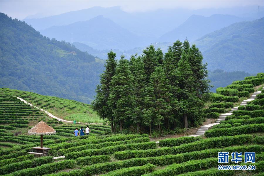 7月24日,游客在陜西平利縣老縣鎮(zhèn)蔣家坪村茶業(yè)現(xiàn)代示范園區(qū)游覽。陜南地區(qū)地處秦巴山區(qū),是陜西脫貧攻堅(jiān)的主戰(zhàn)場。近年來,陜南各縣區(qū)因地制宜、精準(zhǔn)施策,通過發(fā)展社區(qū)工廠、特色種植、旅游扶貧、技能培訓(xùn)、電商帶貨等措施,促進(jìn)多種產(chǎn)業(yè)發(fā)展,助力農(nóng)民增收。新華社記者邵瑞攝