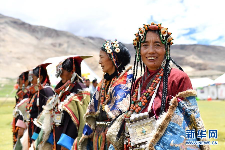 在西藏阿里地區(qū)普蘭縣科迦村,村民在展示普蘭服飾(7月28日攝)。在西藏阿里地區(qū)普蘭縣,至今保留著獨(dú)特的藏族服飾——普蘭服飾。據(jù)了解,普蘭服飾已有1000多年的歷史,其中最精美、最獨(dú)特的是婦女的“孔雀”服飾,一套重達(dá)20多公斤,裝飾有黃金、白銀、蜜蠟、珊瑚、綠松石等,堪稱(chēng)“穿在身上的千年歷史”。新華社記者詹彥攝