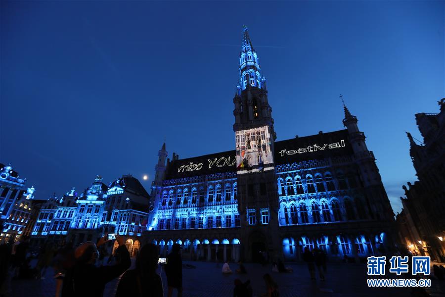 7月29日,比利時布魯塞爾大廣場的市政廳外墻上投射出“想念你,節(jié)日”的字樣。7月29日,比利時布魯塞爾大廣場舉行大型聲光秀。藝術家在市政廳等歷史建筑上投影文字和圖案,紀念這個夏天受新冠疫情影響而不能如期舉辦的文化活動。新華社記者鄭煥松攝
