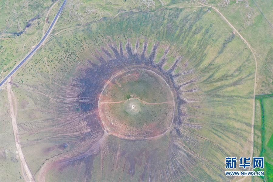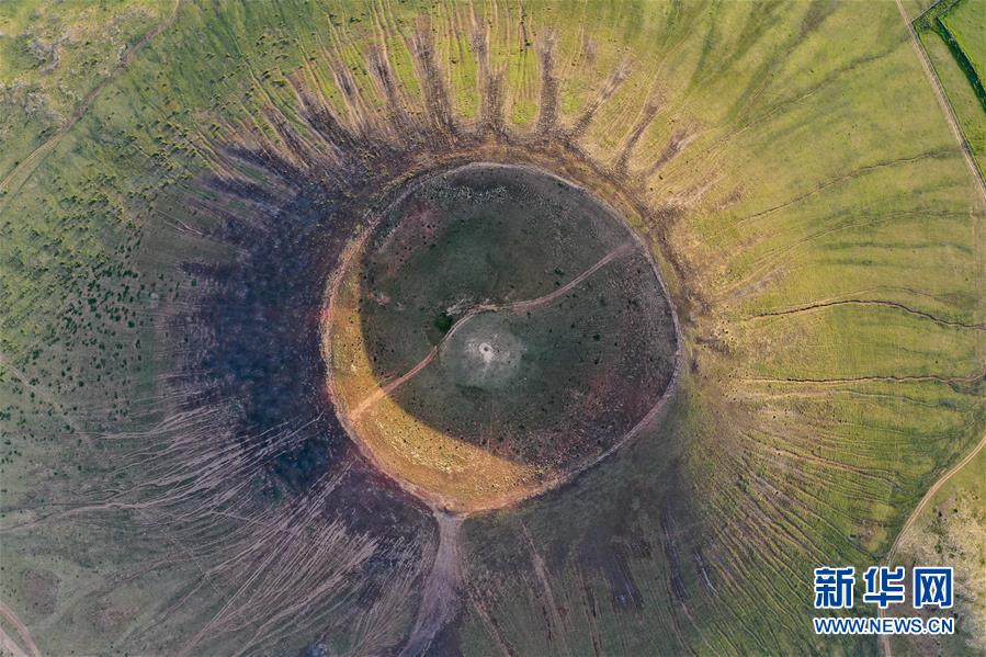這是烏蘭哈達(dá)火山群的一處火山口(7月29日攝,無(wú)人機(jī)照片)。