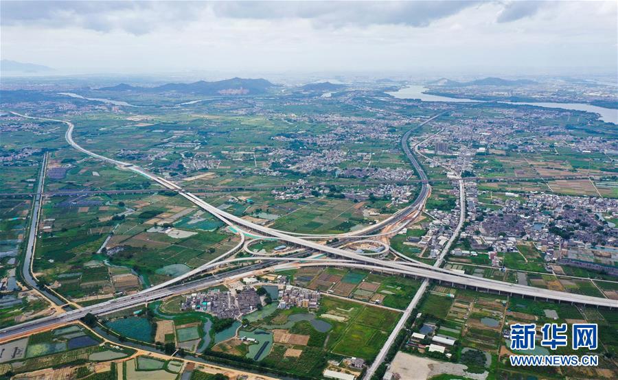 這是已經(jīng)建設(shè)完成的潮汕環(huán)線高速公路上北互通立交,沈海高速公路從該互通立交下面穿過(無人機照片,7月31日攝)。新華社記者劉大偉攝