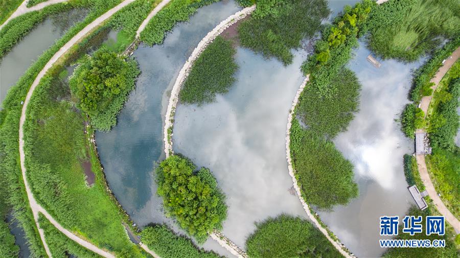 六盤水明湖國(guó)家濕地公園風(fēng)景(無(wú)人機(jī)照片,6月17日攝)。新華社記者陶亮攝
