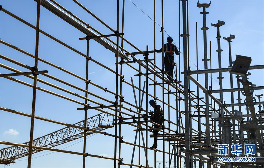 8月3日,工人在長江文創(chuàng)產(chǎn)業(yè)園項(xiàng)目工地施工。進(jìn)入8月,武漢迎來持續(xù)高溫天氣。在湖北廣電傳媒基地工程的工地上,中建三局總承包公司1500多名工人持續(xù)奮戰(zhàn),力保工程進(jìn)度。該工程是我國中部地區(qū)首個國家級廣播影視媒體基地,由湖北廣電傳媒大廈項(xiàng)目、長江文創(chuàng)產(chǎn)業(yè)園項(xiàng)目、廣電生活配套項(xiàng)目三大板塊組成,總建設(shè)規(guī)模130萬平方米。自今年3月25日獲批正式復(fù)工以來,承建方克服困難,把因疫情影響耽誤的工期趕了回來,預(yù)計(jì)將按原計(jì)劃完成建設(shè)任務(wù)。新華社記者程敏攝