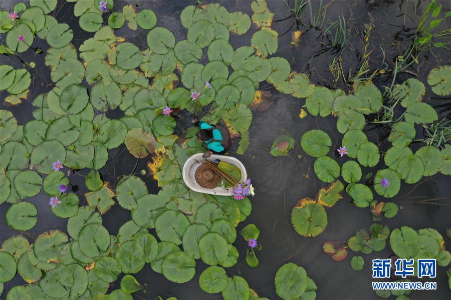 8月4日,藝溯家生態(tài)農(nóng)場工作人員在池塘采摘香水蓮花。近年來,位于浙江湖州吳興區(qū)八里店鎮(zhèn)移沿山村的藝溯家生態(tài)農(nóng)場,在約45畝的傳統(tǒng)水產(chǎn)養(yǎng)殖池塘上規(guī)?;N植香水蓮花,既凈化水質(zhì),又提高了經(jīng)濟效益。農(nóng)場還設(shè)計出種植、采摘和加工香水蓮花的工藝流程,以面向更多農(nóng)戶推廣。新華社記者黃宗治攝