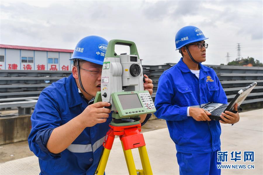 8月5日,中鐵十一局技術(shù)人員在清遠(yuǎn)磁浮軌排基地對試驗(yàn)梁軌排進(jìn)行精調(diào)。目前,廣東首條中低速磁浮線——清遠(yuǎn)磁浮旅游專線項(xiàng)目建設(shè)有序推進(jìn)。廣東清遠(yuǎn)磁浮旅游專線項(xiàng)目全長約38公里,分兩期建設(shè)。首期全長8.014公里,將在9月份開始鋪軌,預(yù)計在2020年底實(shí)現(xiàn)主體工程全面完工。新華社記者劉大偉攝