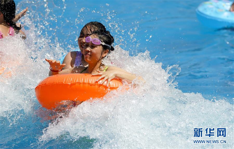 8月5日,重慶涪陵紅酒小鎮(zhèn)水上樂園內,市民在水中嬉戲。當日,重慶市氣象臺再次發(fā)布“高溫橙色預警信號”,重慶大部分海拔400米以下地區(qū)日最高氣溫將升至37℃以上,局地可達40℃以上。許多重慶市民涌進當?shù)氐乃蠘穲@和泳池,在水中享受夏季的清涼。新華社記者劉潺攝