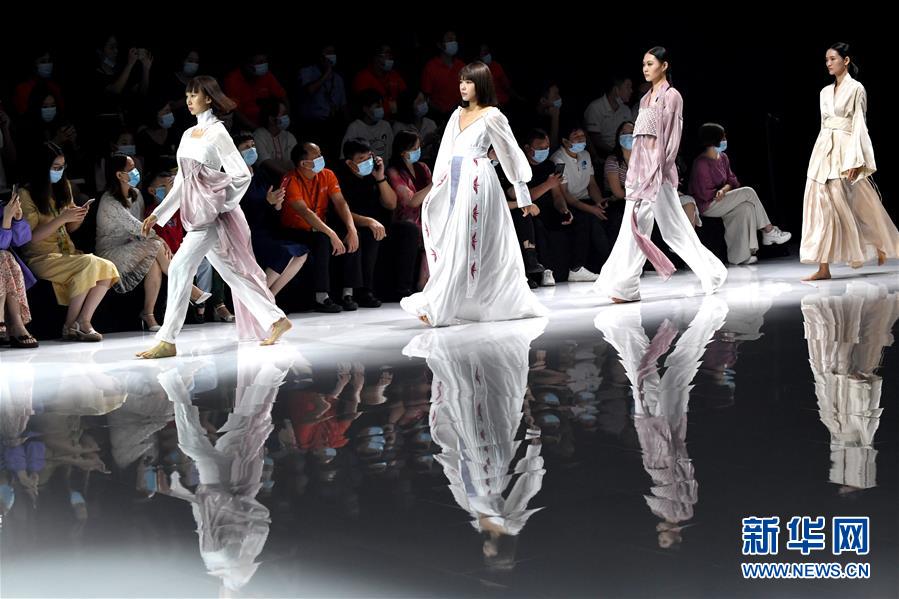 8月6日,模特在時裝秀上展示時裝。當(dāng)日,2020中國(河南)國際大學(xué)生時裝周舉行河南大學(xué)生優(yōu)秀服裝設(shè)計專場展示。8月5日至7日,2020中國(河南)國際大學(xué)生時裝周在河南省新密市豫發(fā)密蘭小鎮(zhèn)舉行。新華社記者朱祥攝