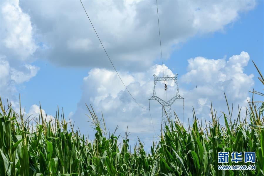 8月6日,送電工在吉林省長(zhǎng)春市城郊的一處輸電鐵塔上施工作業(yè)。吉林省長(zhǎng)春市連續(xù)多日出現(xiàn)高溫天氣,國(guó)網(wǎng)長(zhǎng)春供電公司輸電運(yùn)檢中心的送電工們每天清晨開(kāi)始作業(yè),不畏烈日“烤”驗(yàn),堅(jiān)守工作崗位,確保工程按計(jì)劃完成。新華社記者張楠攝
