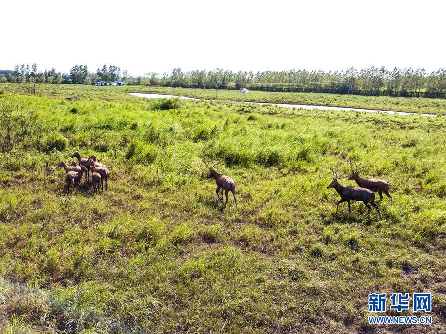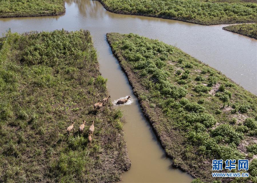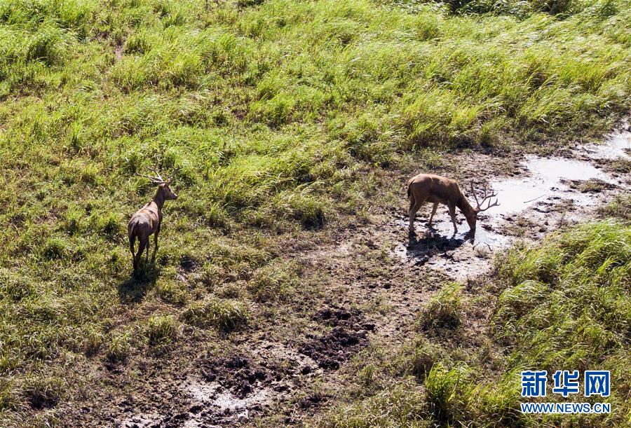 這是8月7日在東洞庭湖麋鹿和鳥類救治避難中心拍攝的麋鹿(無(wú)人機(jī)照片)。位于湖南省岳陽(yáng)市的東洞庭湖麋鹿和鳥類救治避難中心成立于2016年9月,占地400余畝,中心自建成后就承擔(dān)起東洞庭湖區(qū)域全部麋鹿的救援、醫(yī)治、康復(fù)和喂養(yǎng)任務(wù)。目前該中心共有14只麋鹿正在接受救助。新華社記者李鑫攝
