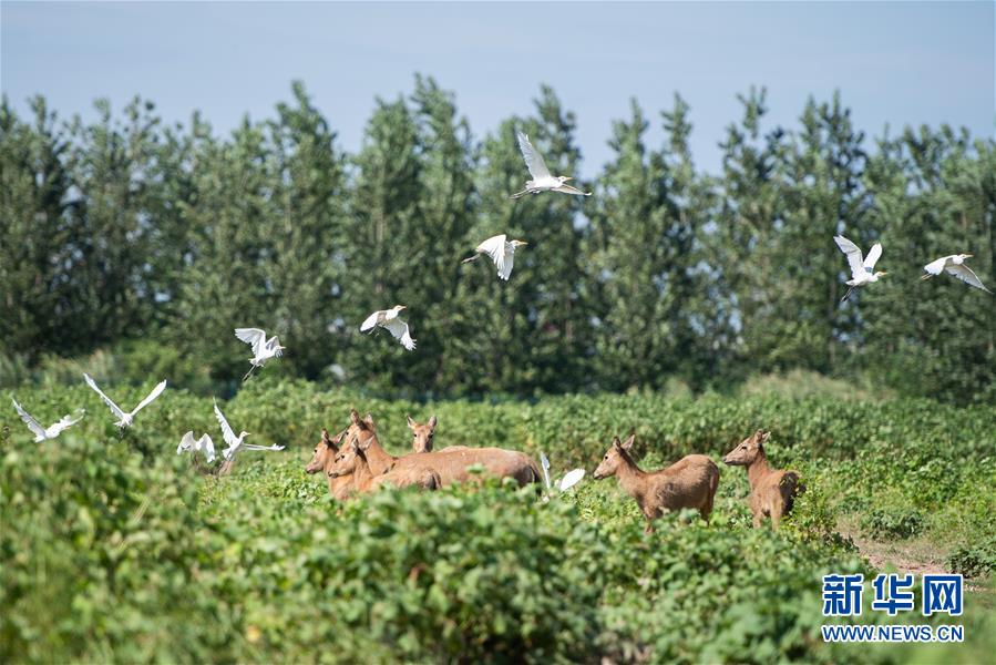 這是8月7日在東洞庭湖麋鹿和鳥類救治避難中心拍攝的麋鹿和飛鳥。位于湖南省岳陽(yáng)市的東洞庭湖麋鹿和鳥類救治避難中心成立于2016年9月,占地400余畝,中心自建成后就承擔(dān)起東洞庭湖區(qū)域全部麋鹿的救援、醫(yī)治、康復(fù)和喂養(yǎng)任務(wù)。目前該中心共有14只麋鹿正在接受救助。新華社記者陳思汗攝