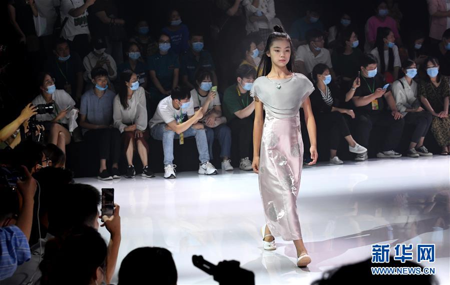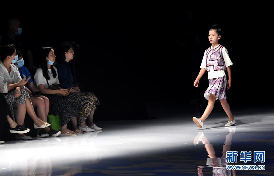 8月7日,小模特在T臺上展示童裝。當(dāng)日,2020中國(河南)國際大學(xué)生時裝周舉行童裝設(shè)計(jì)專場展示。8月5日至7日,2020中國(河南)國際大學(xué)生時裝周在河南省新密市豫發(fā)密蘭小鎮(zhèn)舉行。新華社發(fā)(海雨涵攝)