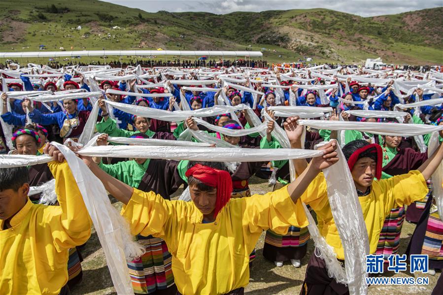 8月7日,在西藏首屆弦子舞展演現(xiàn)場,演出人員在表演舞蹈《弦鼓情緣》。當(dāng)日,西藏首屆弦子舞展演在昌都市芒康縣舉行。眾多演員同臺獻(xiàn)藝,表演國家級非物質(zhì)文化遺產(chǎn)弦子舞,吸引西藏各地的群眾前來觀看。新華社記者孫非攝