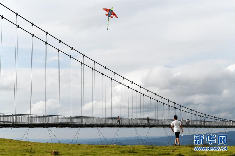 8月8日,游客在貴州省龍里油畫大草原旅游觀光。近日,貴州省黔南布依族苗族自治州龍里縣境內(nèi)氣候宜人,龍里油畫大草原、“龍門鎮(zhèn)”武俠文化主題景區(qū)等景點吸引眾多游客前來觀光旅游。新華社記者楊文斌攝。