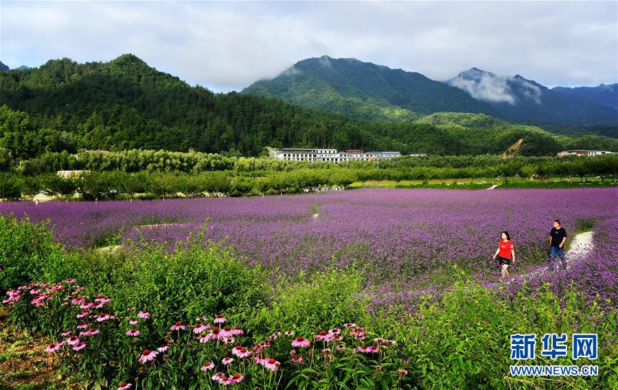 市民在位于陜西漢中市留壩縣城的金水灣花海散步(7月2日攝)。近年來,陜西地處秦巴山區(qū)的多個(gè)縣市結(jié)合當(dāng)?shù)刈匀粴夂驐l件打造特色花海景觀,利用“花海經(jīng)濟(jì)”助力脫貧攻堅(jiān)和鄉(xiāng)村振興。新華社記者劉瀟攝。