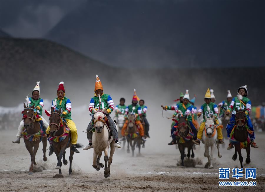 8月10日,騎手馳騁在當(dāng)雄縣賽馬場。新華社記者普布扎西攝。